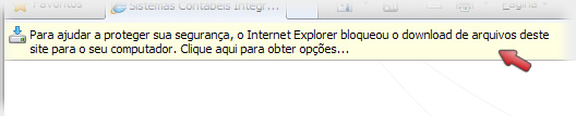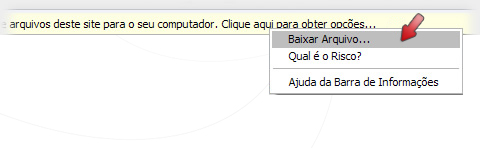 Alguns navegadores, como o Internet Explorer, exibem uma Barra de Informações (logo abaixo da barra de endereços) quando existe a tentativa de download de algum arquivo executável. Para receber instruções de como baixar a versão de avaliação quando isso ocorrer, clique aqui.