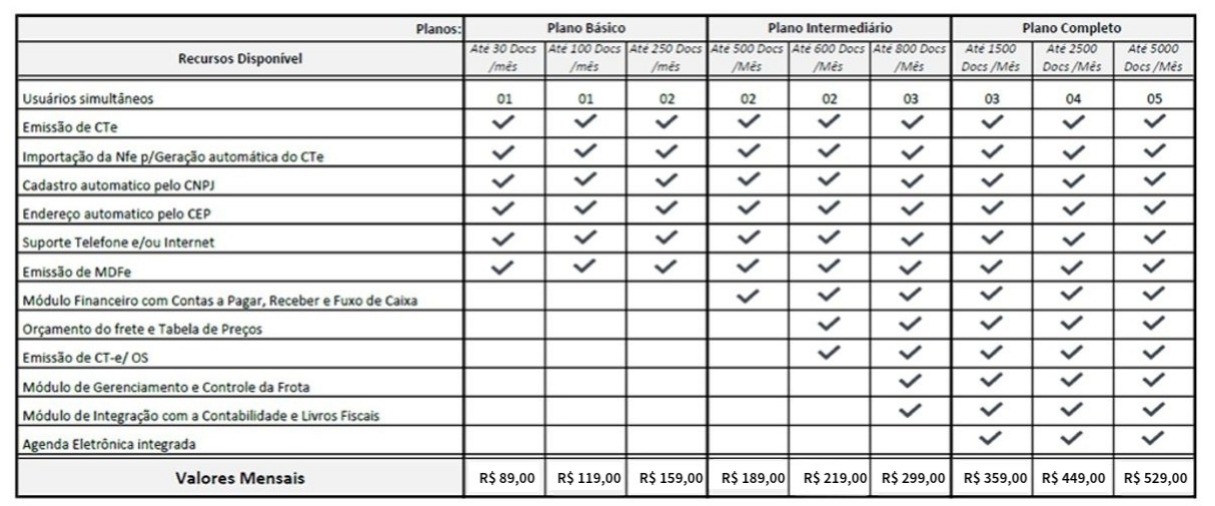 O sistema de CTe Conhecimento de Transporte Eletrônico foi desenvolvido com o objetivo de atender às necessidades de emissão do Conhecimento de Transporte Eletrônico -CT-e, emissão do Manifesto Eletrônico MDF-e, Emissão Conhecimento de Passageiros CT-e-OS e ainda inclui um módulo para gerenciamento e gestão da frota, com controle de manutenções, combustíveis, revisões, documentação, controle de viagens, etc. e um módulo Financeiro com controle de Contas a Pagar, a Receber com emissão de cobrança bancária e Fluxo de Caixa, tudo isto através de módulos opcionais que permitem adequar o sistema e suas configurações às suas necessidades. Um sistema para transportadoras moderno, ágil, flexível, integrado, fácil e como ótima relação custo X benefício, para pequenas e médias transportadoras ou empresas com frota própria.